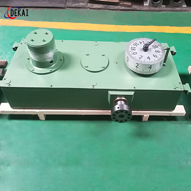 軋機壓下二次包絡(luò)減速機,內(nèi)部蝸輪蝸桿采用平面二次包絡(luò)技術(shù),一種新型的傳動裝置,其承載能力大,傳動效率高,結(jié)構(gòu)緊湊,合理,使用壽命長,外形精美。特別適用于大型鋼廠的各種連鑄機械。