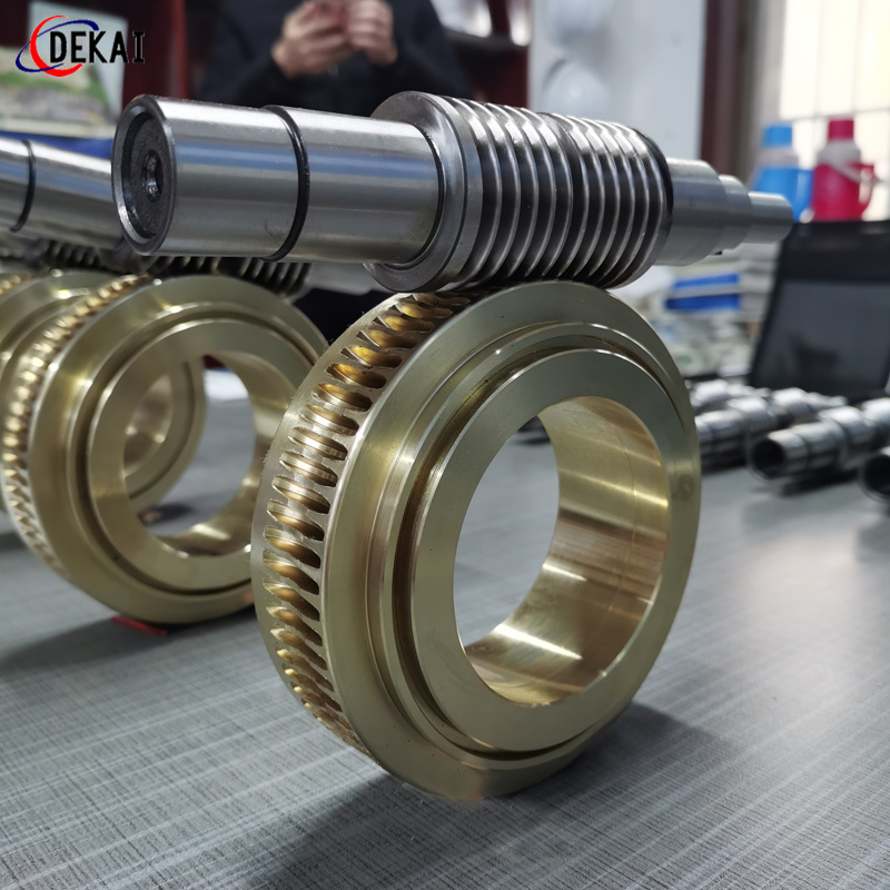 分度精度高,側隙可調整至0.01~0.03Mmm;齒面接觸穩,不會改變中心距。調整標準,方便可靠。裝配靈活,裝配時,用調整環來獲得合適的嚙合側隙。使用中如果因為磨損導致傳動間隙增大,只要調整一下蝸桿的軸向位置,可以使蝸桿蝸輪傳動副恢復到原來的精度,不需要更換新的蝸桿,蝸輪,比較實用。蝸桿材質采用40Cr,42CrMo、38CrMoAl合金鋼。蝸桿采用錫青銅ZCuSn10Pb1離心澆鑄,具有高強度耐磨性。