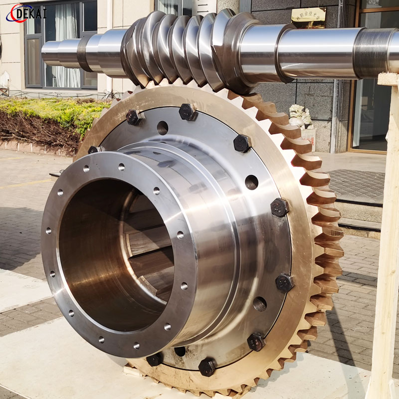平面二次包絡環面蝸桿傳動于1971年發明的一種新型蝸桿傳動裝置,這種蝸桿副具有以下特點:蝸桿齒面硬度高,表面經滲碳后精確磨削而成,精度高,表面光滑。加工過程與成形原理吻合度高,傳動精度高。蝸桿與蝸輪的嚙合為多齒接觸,每齒為瞬時雙線接觸,齒面接觸區可達百分之七十以上。嚙合面的綜合曲率半徑大。接觸線與相對速度方向夾角大,動壓油膜形成及保持性好。此種蝸輪副承載能力大,傳動效率高,耐磨損,可廣泛地應用與冶金,礦山,化工,建筑,橡塑,船舶等各種行業中。