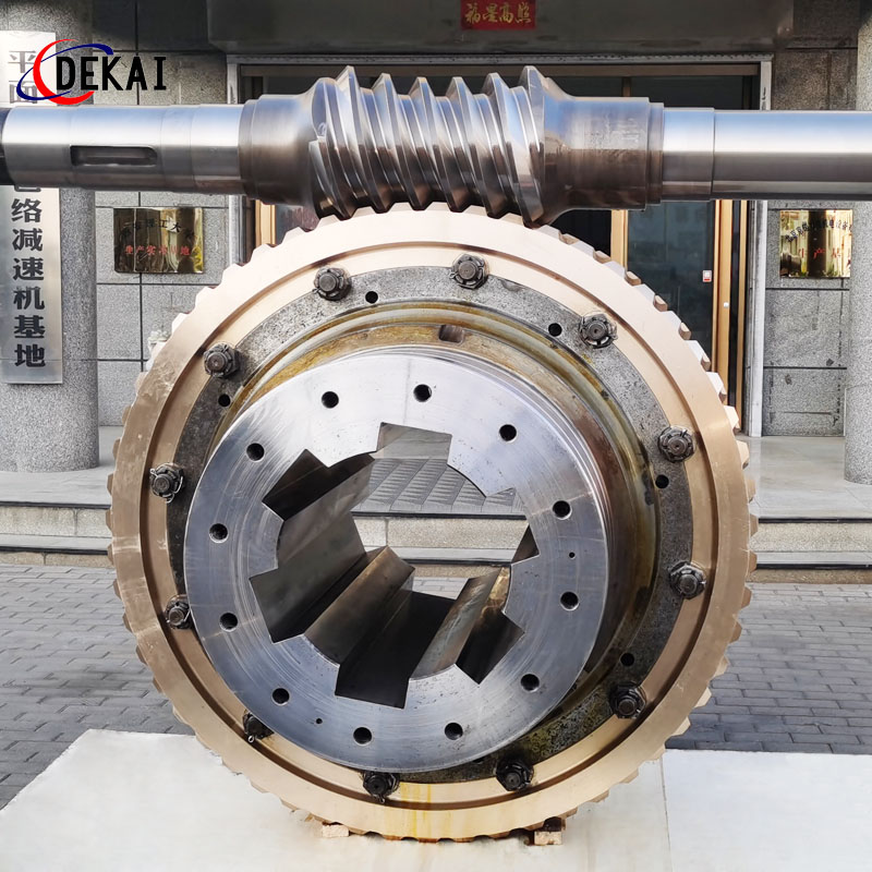 承載能力大:平面二次包絡蝸輪副是以一個平面為母面,通過相對圓周運動,包絡出環面蝸桿的齒面,然后再以蝸桿的齒面為母面,通過相對運動包絡出蝸輪的齒面而形成的。用這種方法加工出的平面二次包絡蝸桿副,具有以下特征:1、承載能力大:平面二次包絡環面蝸桿能多齒同時進入嚙合,增 大了接觸面積,減少了齒面壓力,承受大的沖擊載荷。蝸桿蝸輪的接觸線是沿齒高方向上,并且齒面的嚙合是在接觸線上,具有很小的相對曲率,使接觸應力減少。蝸桿和蝸輪在嚙合中同時有兩條接觸線進入工作區域。這和增加嚙合齒數一樣,可提高承載能力。精磨削的蝸桿齒面,表面粗糙度Ra0.8。高質量的蝸桿幾何尺寸和表面粗糙度,保證耐磨防止大負荷時油膜破壞。蝸桿的齒面是經過氮化熱處理后精制而成,齒面硬度HRC≥50,高硬度的蝸桿在設計上保證有足夠的剛性以致于它的彎曲和其它因素不影響上述嚙合特性。