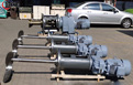 攪拌器的結構類型對攪拌操作的效果有很大的影響。長期以來,工程設計人員和研究人員已開發了各種結構類型的攪拌器,每一種結構的攪拌器都只對某一種或幾種攪拌操作有良好效果,任何一種攪拌器不可能適合所有類型的攪拌操作。因此,針對特定的攪拌操作工況,選擇合適的攪拌器將是攪拌工藝設計之一。對于每一種攪拌器,要獲得其攪拌性能都需要做大量的實驗。工程上常用的攪拌器一般都已在實驗的基礎上得到了比較完整的操作性能。如從攪拌器對流體作用的流動方向上分類,可分為軸流型和徑流型兩種。實際上,這兩類攪拌器不僅使流體流型不一樣,對流體作用的力也不一樣。推進式攪拌器一般為3葉,也可為2葉或4葉。其葉片直徑與攪拌槽內徑之比為0.2~0.5,常取為0.33.螺距與葉片直徑的比值為1~2。軸流型攪拌器在旋轉時,將主要從軸的方向輸出流體。推進式攪拌器容積循環速率大,在工作時能很好地使流體流動處于湍流狀態。但由于其在旋轉時,主要對流體作用為軸向的推力,對流體剪切力很小,這種攪拌器難以使高粘度流體處于湍流狀態,也難以使高粘度流體充分攪拌混合。推進式攪拌器的轉速一般應在100~500r/min范圍內,故這種攪拌器一般適用與低粘流體的混合操作。推進式攪拌器可從攪拌槽的軸線安裝,也可使其從攪拌槽的側面或頂部的側向進入。當攪拌槽壁上不安裝擋板時,采用推進式攪拌器從側向進入的方式將能起到更好的攪拌效果。但側向安裝攪拌器一般在設備結構上較為復雜,可能會增加設備制造、安裝的難度,同時增加了制造成本。因此在工程應用時,一般扔采用從攪拌槽的軸線按章的方式,這時,如槽內無擋板、槽內流體易形成旋渦 而影響兩種流體的混合。
