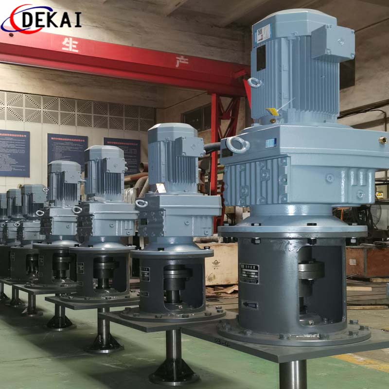 渦輪式攪拌器分為單向圓盤渦輪式攪拌器、異性圓盤渦輪式攪拌器。單向渦輪為徑流型攪拌器,有較大的離心輻射狀流線,一般在中高速段使用,有類似葉片泵的功能,有較高的泵送能力,剪切力和分散能力高,特別適合于強度要求的氣體分散,吸收,萃取等操作,也適用于固體懸浮、傳熱、非均相反應操作。異形圓盤渦輪式攪拌器,箭葉式圓盤渦輪式攪拌器也是一種以徑流為主的攪拌器,但其槳葉剖面為拋物面,因而軸向有上下兩股斜向循環流,相對P Y功耗低,且具有較高的剪切力,適用于氣體分散、吸收、傳質、混合、兔爺懸浮等操作。H D Y B TD都是徑流式攪拌器,它們的葉片分別為凹圓弧形及拋物面,具有強的徑向排量及分散能力,在相同功率下,其傳質系數比平直葉圓盤渦輪高30%以上,持氣能力提高40%以上,且功耗比甚低,因此特別適用類似發.酵工藝的溶氧操作,也適用于其它要求下的氣體分散、吸收、混合、傳質等操作。