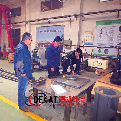 近日,德凱為北京京騰量身制作的煉油廠專用的催化劑攪拌裝置,已制作完成,迎來客戶公司技術總蒞臨指導,該攪拌設備攪拌器采用斜葉圓盤渦輪式,材質選用304L不銹鋼,減速機為進口SEW,電機為國內知名品牌南陽防爆電機,整套設備設計合理,結構緊湊,攪拌效果佳,性能穩定,受到客戶一致好評。